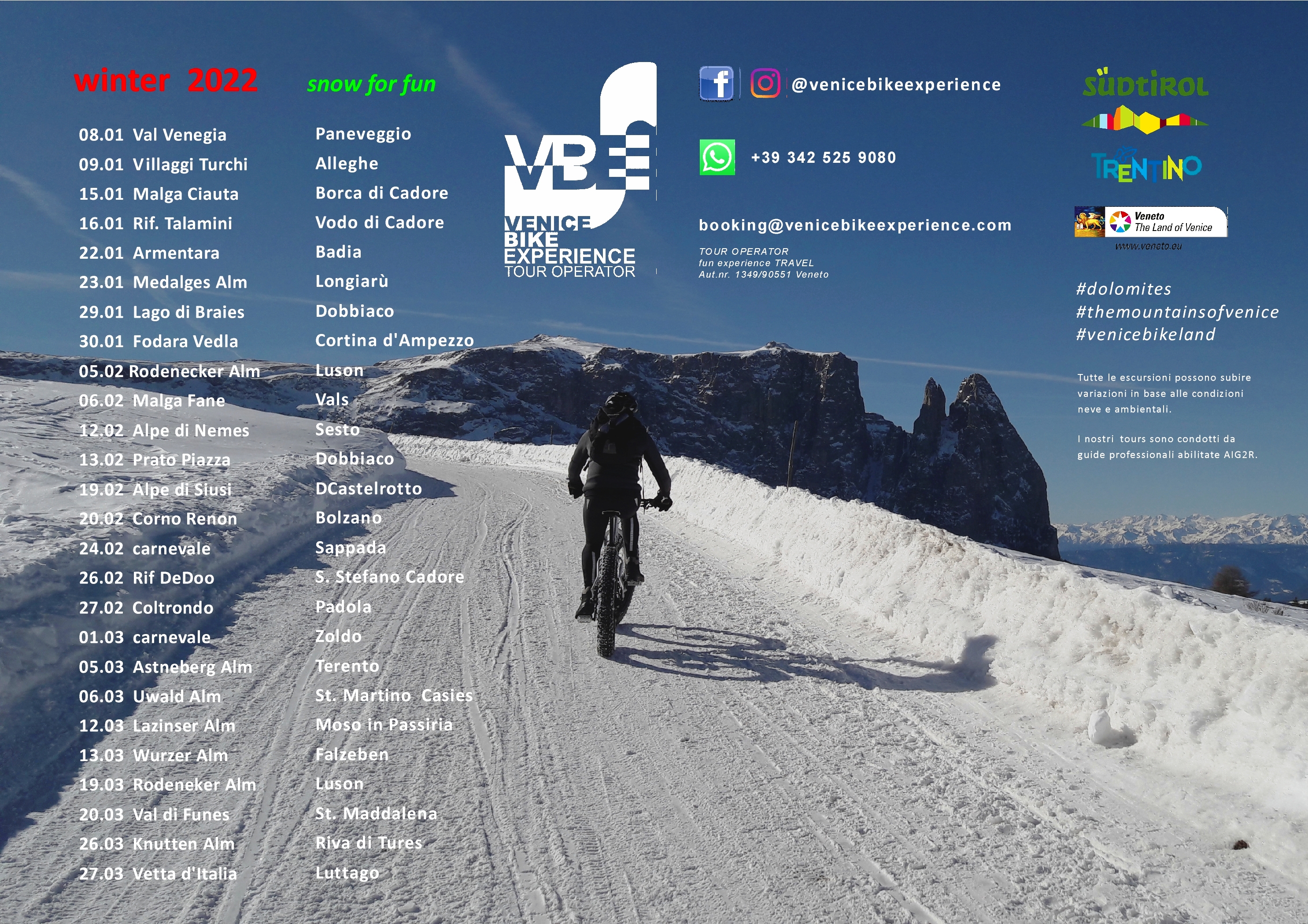 Scopri i singoli tour programmati, sempre disponibili a richiesta, per Inverno 20-22 oppure scarica il programma escursioni a richiesta.